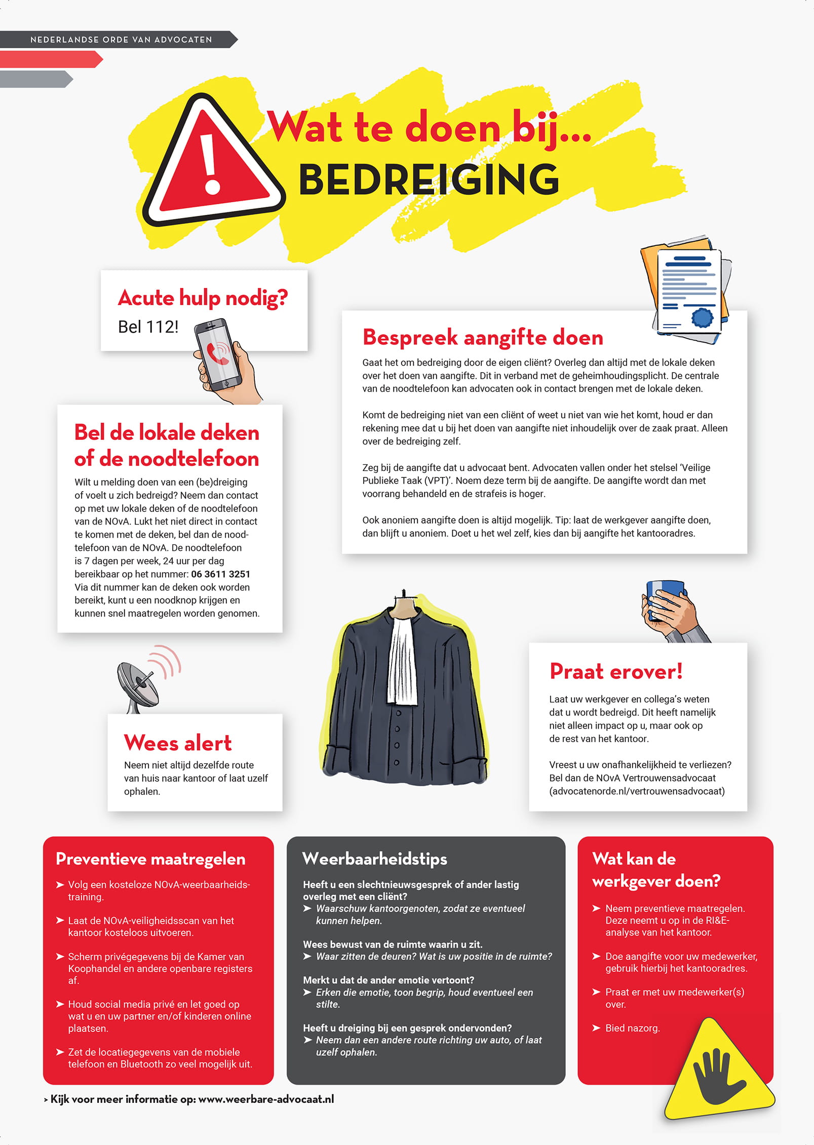 ‘Toen mijn collega stopte als advocaat en een andere collega met vakantie ging, nam ik een echtscheidingszaak over. Het was geen ingewikkelde zaak. Er stonden al afspraken op papier. Ik leerde de cliënt kennen als een vriendelijke vrouw. Ze bedankte mij ook voor mijn dienstverlening als we contact hadden. Totdat de afspraken nagekomen moesten worden. Ze weigerde. Of ik dat even op papier wilde zetten. Toen ik haar uitlegde waarom ik dat niet zou doen, sloeg de sfeer om. Ze werd boos, dreigde met het doen van aangifte en begon vervelende e-mails te sturen. Een paar dagen later kregen we een steen door het raam van kantoor. Dat kan toeval zijn. Er zitten namelijk meerdere kantoren bij ons in het pand. Maar ik ben voor de zekerheid wel mijn auto ergens anders gaan parkeren.’