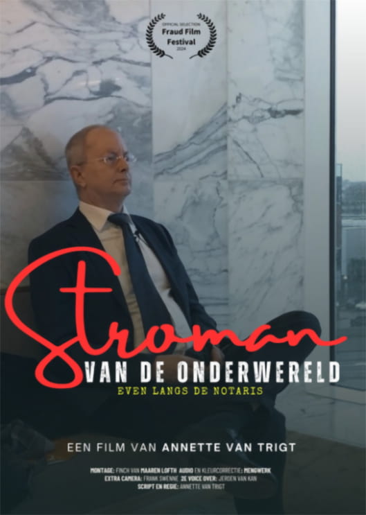 ‘Stroman van de onderwereld, even langs de notaris’, ging op 7 november in première, op het Fraude Film Festival in Amsterdam. Van Trigt zegt zich bij het maken van de film te hebben laten leiden door journalistieke nieuwsgierigheid en verbazing. ‘Toen ik contact legt met P. wist ik niet waarin ik terecht zou komen. Onderweg heb ik me hogelijk verbaasd over de gang van zaken. Over het tuchtrecht waarbij notarissen oordelen over hun eigen vakgenoten. Over de milde taakstraf, terwijl P. een notariële akte vervalste waarin ie bevestigde voor € 140 miljoen aan bolivars gezien te hebben. De aanpak van witwassen staat hoog op de politieke agenda, maar uit mijn film blijkt die aanpak een wassen neus.’