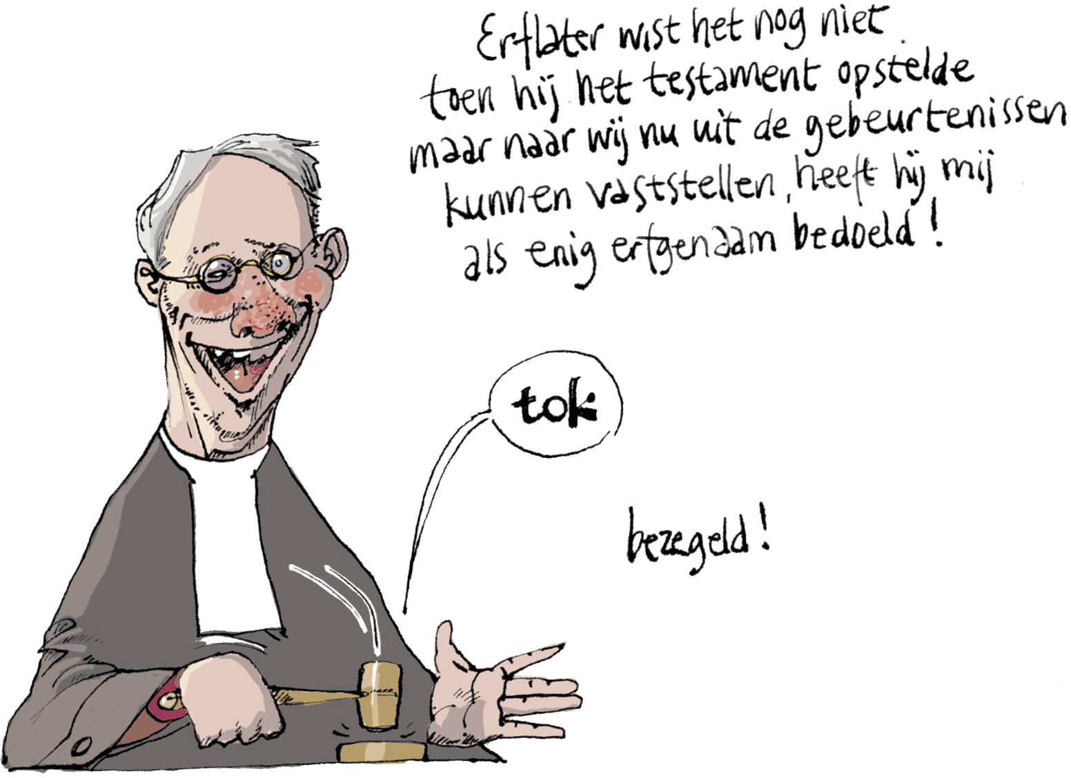 De Hoge Raad wees op 10 november 2023 (ECLI:NL:HR:2023:1531) een belangrijk arrest over de uitleg van het testament als bedoeld in artikel 4:46 BW. Bij die uitleg kunnen ook relevant zijn omstandigheden waaraan de erflater niet heeft gedacht toen hij het testament liet opstellen. Verwezen wordt naar r.o.v. 3.2.1 en 3.2.2 van het arrest. Hierin zet de Hoge Raad uiteen dat bij de uitleg van een testament moet worden gelet op de verhoudingen die het testament kennelijk wenst te regelen, en op de omstandigheden waaronder het is gemaakt. Verwachtingen over toekomstige gebeurtenissen die de erflater had bij het opstellen van het testament kunnen in aanmerking komen als omstandigheid waaronder het testament is gemaakt. Deze verwachtingen kunnen ook van belang zijn bij het vaststellen van de verhoudingen die de erflater met de uiterste wil kennelijk wenst te regelen. Doen zich na het opmaken van de uiterste wil feiten en omstandigheden voor (zoals in dit geval een tweede huwelijk en de geboorte van twee kinderen) waardoor de feitelijke verhoudingen niet langer aansluiten bij hetgeen de erflater kennelijk wenste te regelen, dan kan het testament zo worden uitgelegd dat het alleen geldt voor de situatie die bestond voordat de bedoelde feiten en omstandigheden zich hadden voorgedaan. Voor een zodanige uitleg van het testament is niet vereist dat de erflater bij het opmaken daarvan op de bedoelde feiten en omstandigheden vooruitloopt. De omstandigheid dat de erflater in zijn testament niet is vooruitgelopen op een scheiding, een tweede huwelijk en de komst van kinderen, maakt met andere woorden dus niet dat die wijziging bij de uitleg van het testament geen rol kan spelen, aldus de Hoge Raad. Over de uitleg van testamenten zie verder ook gerechtshof Arnhem-Leeuwarden 19 december 2023 (ECLI:NL:GHARL:2023:10832), waarin het hof oordeelt dat de erflaatster ten tijde van het opstellen van haar testament geen rekening heeft gehouden met het feit dat zij later in haar leven is getrouwd en naast appellant nog twee kinderen heeft gekregen. Aan haar eerdere testament komt geen betekenis toe voor wat betreft de vererving van de nalatenschap van erflaatster en daarop is nu het wettelijk versterferfrecht van toepassing. Zie voor een soortgelijke zaak ook het arrest van het gerechtshof Amsterdam van 20 augustus 2024 (ECLI:NL:GHAMS:2024:2469). Ook in deze zaak wordt de erfstelling in het testament van de erflater vervallen verklaard. Een voorbeeld van een zaak waarin wel het testament wordt gevolgd, is het vonnis van de rechtbank Noord-Holland 14 februari 2024 (ECLI:NL:RBNHO:2024:1597). Zie ook rechtbank Limburg 29 april 2024 (ECLI:NL:RBLIM:2024:2192) waarin de rechtbank na uitlegging van het testament van erflater oordeelt dat de erflater de wettelijke verdeling impliciet heeft uitgesloten.