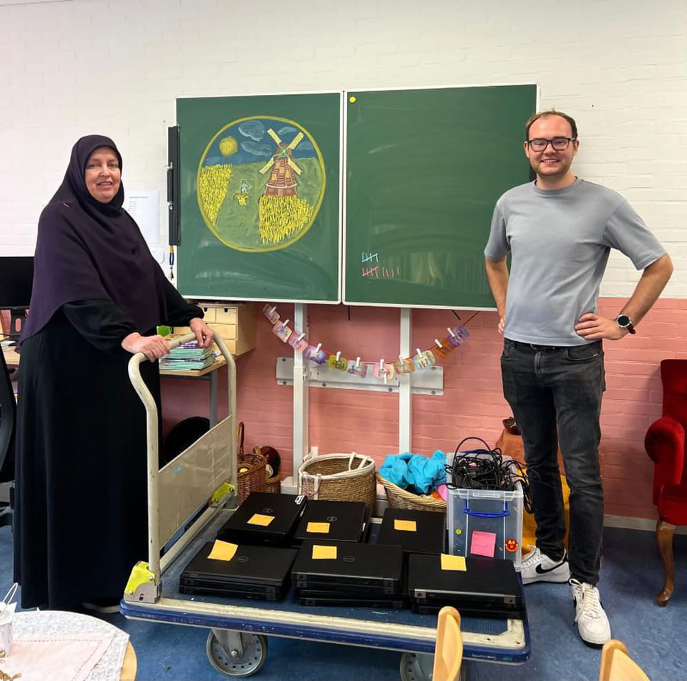 💻 Vandaag bracht hij de laptops naar basisschool ABBS De Zijderoute. Daar worden ze ingezet voor kinderen van wie de ouders thuis niet de mogelijkheid hebben om een laptop aan te schaffen.