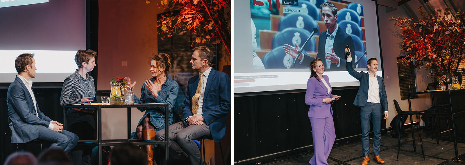 Vervolgens praatten Liesbeth Hulst, bijzonder hoogleraar UvA, Michiel van Nispen, voormalig SP-Tweede Kamerlid, en Teun Struycken, voormalig staatssecretaris voor Rechtsbescherming, met elkaar over de toekomst. De sociale advocatuur staat onder druk door een hoge uitstroom en vergrijzing, terwijl de instroom van jonge advocaten achterblijft en het vak onder studenten minder zichtbaar is. Samenwerking en kennisdeling zijn noodzakelijk, want veel sociaal advocaten werken alleen en subsidies voor stagiairs bieden slechts gedeeltelijk uitkomst.