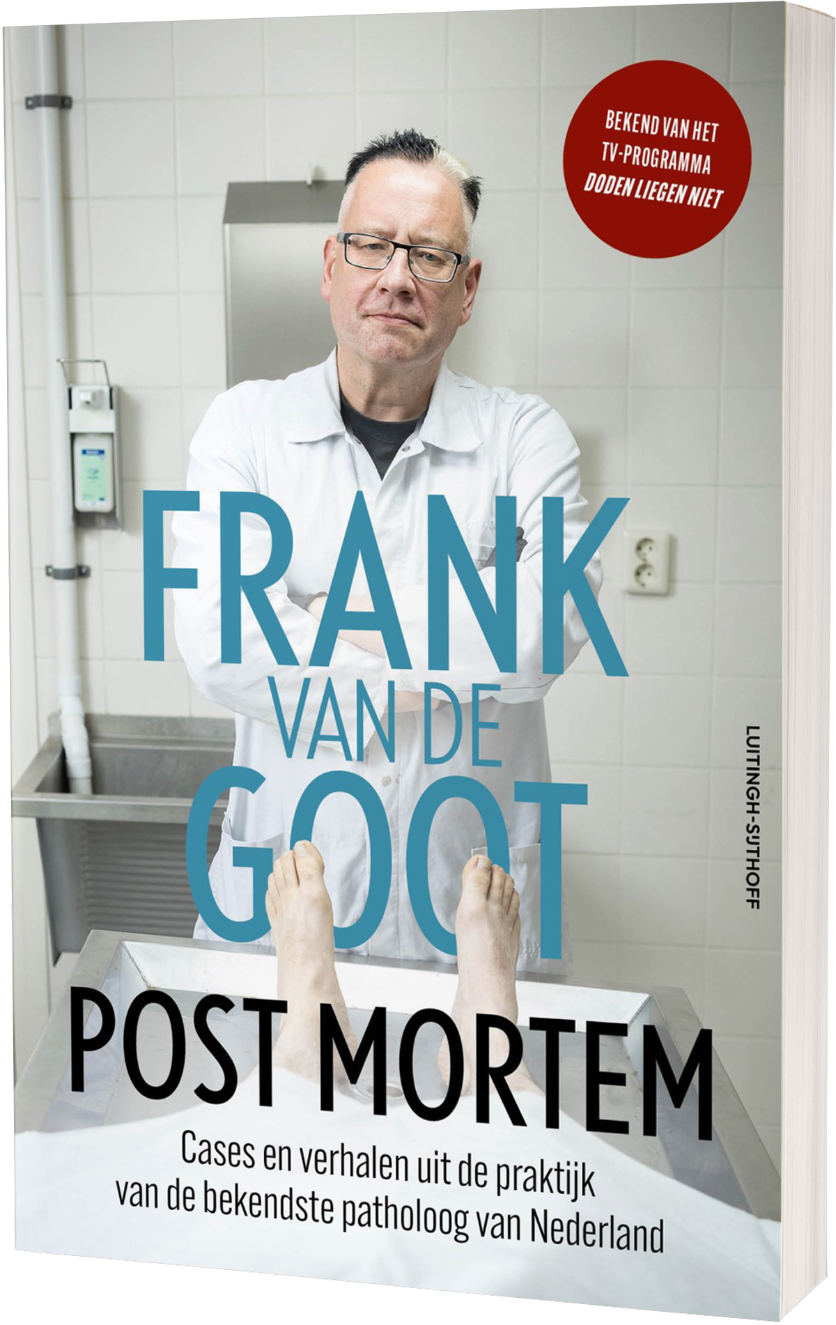 Post mortem (Luitingh-Sijthoff, 2025) houdt het midden tussen een morbide rariteitenkabinet en een nieuwsgierig jongensboek. Het staat vol met lastig verklaarbare sterfgevallen, die auteur en hoofdpersoon Frank van de Goot ontrafelt. Tussenkopjes als ‘De hand die boven de aarde stak’ en ‘De man die in het mes liep’ maken de lezer nieuwsgierig. De patholoog-anatoom gebruikt in zijn werk zowel logica als vindingrijkheid. Pleegde fotomodel Ivana Smit in Maleisië suïcide, of werd zij van het balkon gegooid? Hoe kan een experiment met varkenspootjes aantonen dat een menselijk lijk langdurig intact kan blijven? Van de Goot beschrijft het met droge humor en vakmanschap. Tussen de casussen door legt hij in korte intermezzo’s een reeks pathologische basisprincipes uit: wat is ontbinding, wurging of toxicologisch onderzoek? De inleiding van het boek schreef slachtofferadvocaat Sébas Diekstra, die enkele malen met Van de Goot samenwerkte. ‘Wat Frank zo waardevol maakt voor mij en mijn cliënten,’ aldus Diekstra, ‘is de combinatie van wetenschappelijke precisie en menselijkheid. Zijn bevindingen geven feiten, maar vaak ook iets wat nog belangrijker is: erkenning.’